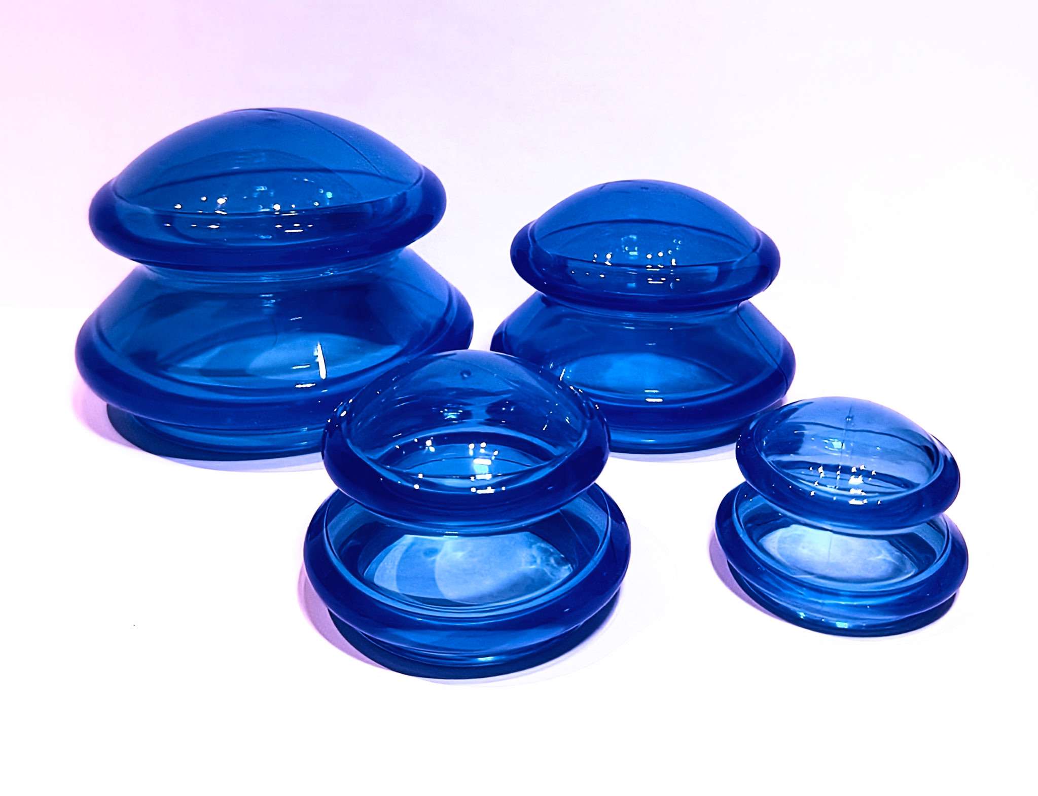 Silicone cups are soft cups to be used for myofascial decompression (MFD) techniques, and improves the ability to create suction over contoured areas of the body. The four different sizes of cups in the set allow for versatile range of applications on different areas of the body. Use MFD techniques to lift and stretch fascia to release tightness. Silicone cups can be used for soft tissue, lymphatic massage, sports injuries, immune and respiratory support.